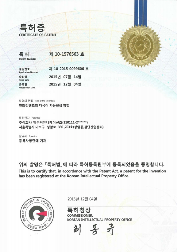 [한국/특허] 만화 컨텐츠의 다국어 자동 편집 방법 페이지 정보 작성자 WeDu 댓글 0건 조회 6,736회 작성일 19-05-30 18:49 본문 2015-07-14 특허 10-2015-0099606 만화 컨텐츠의 다국어 자동 편집 방법 List Previous[한국/특허] 전자서적과 연동되는 게임의 제공 장치 19.05.30
