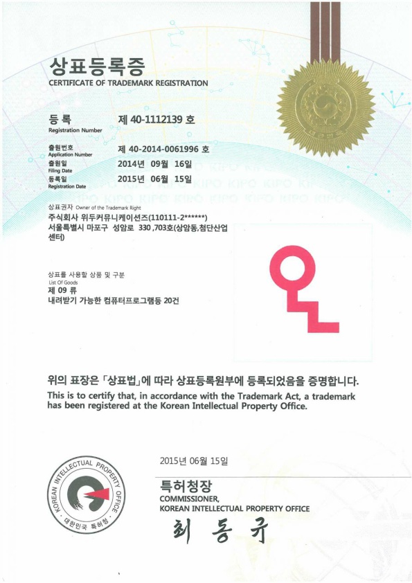 [한국/상표] OLL 09류 페이지 정보 작성자 WeDu 댓글 0건 조회 6,418회 작성일 19-05-30 18:58 본문 2015-06-15 상표 제 40-1112139호 9류 List Previous[한국/상표] OLL 16류 19.05.30 Next[한국/특허] 전자서적과 게임의 연동을 지원하는 에듀테인먼트 시스템 19.05.30