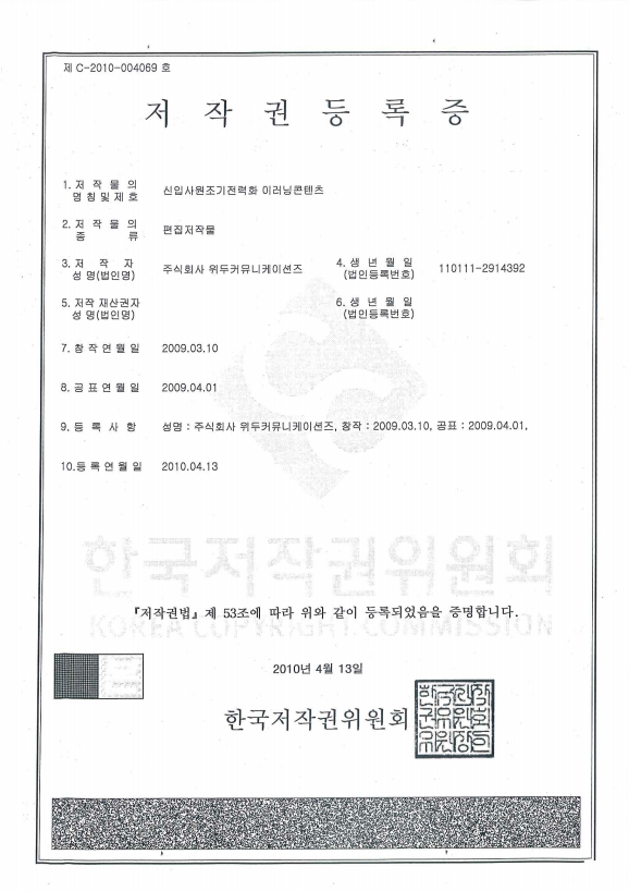 [한국/저작권] 신입사원조기전력화 이러닝 콘텐츠 페이지 정보 작성자 WeDu 댓글 0건 조회 6,458회 작성일 19-05-30 19:01 본문 2010-04-13 저작권 C-2010-004069 신입사원조기전력화 이러닝콘텐츠 / 편집저작물 List Previous[한국/저작권] 리안의 수학 모험 19.05.30 Next[한국/상표] OLL 41류 19.05.30